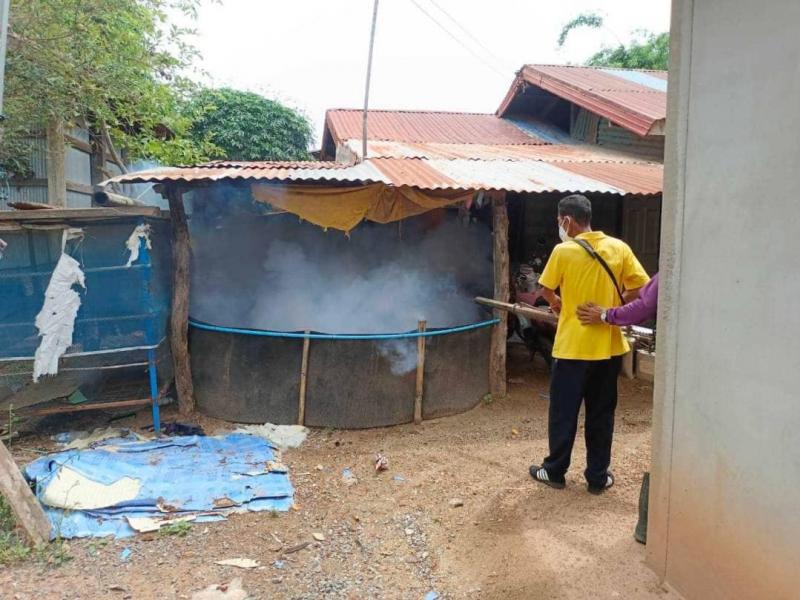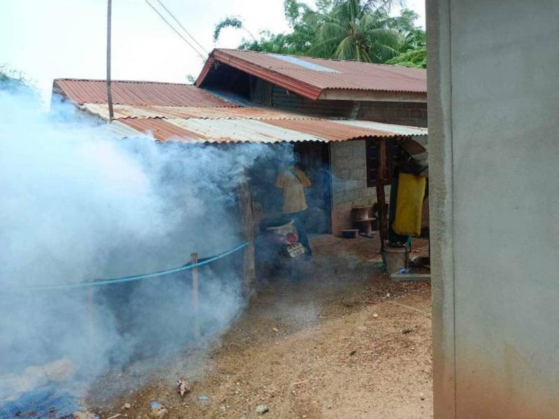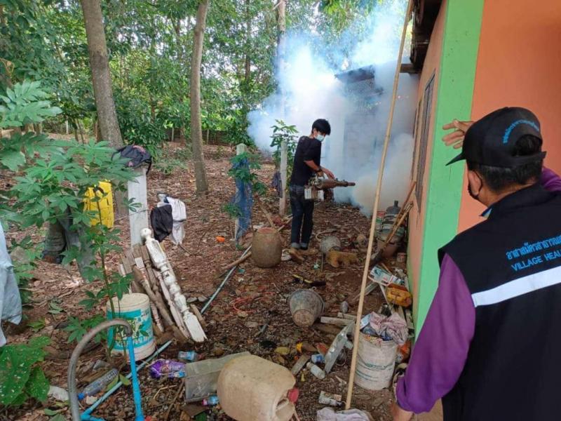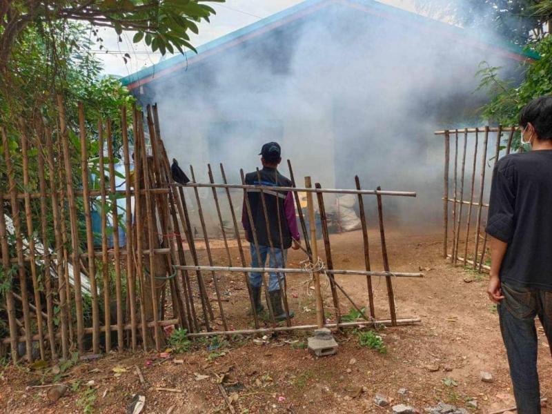 13 มิ.ย. 2565 กองสาธาณสุขและสิ่งแวดล้อม ร่วมกับ รพสต.โพนงาม ออกพ่นหมอกควันกำจัดยุงลาย เพื่อควบคุมโรคไข้เลือดออก ครั้งที่ 1 หมู่ 8 บ้านดงคำ