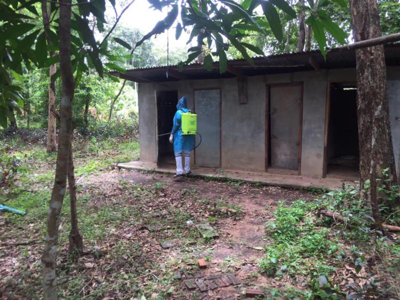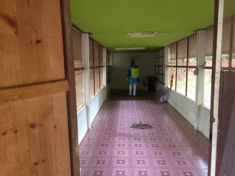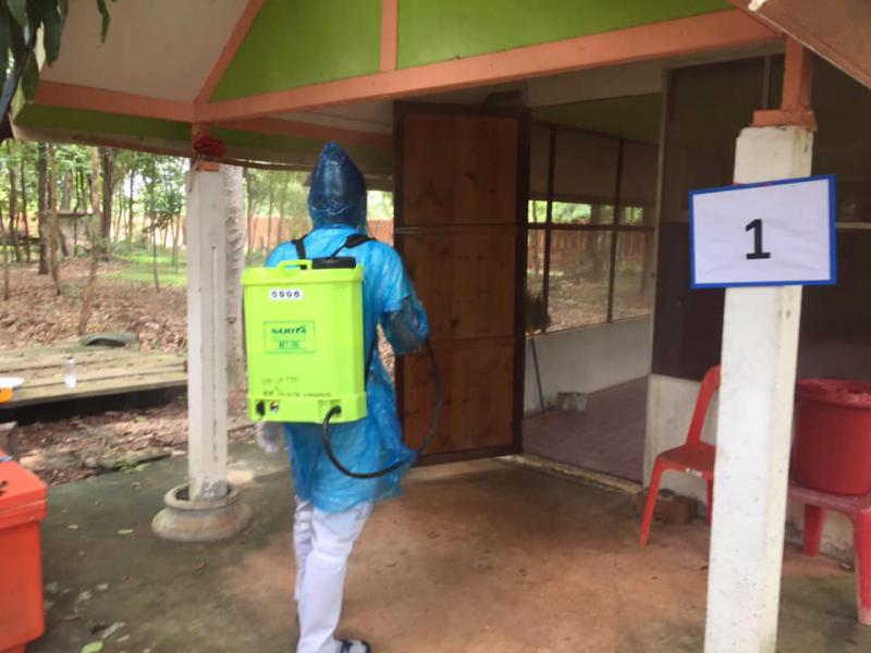 ตรวจเยี่ยมสถานที่กักตัววัดป่าไม้น้อยบ้านนิคมหนองตาลและนำทีมเข้าฉีดพ่นฆ่าเชื้อ