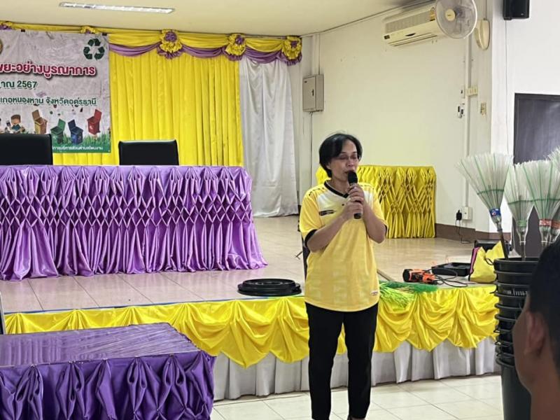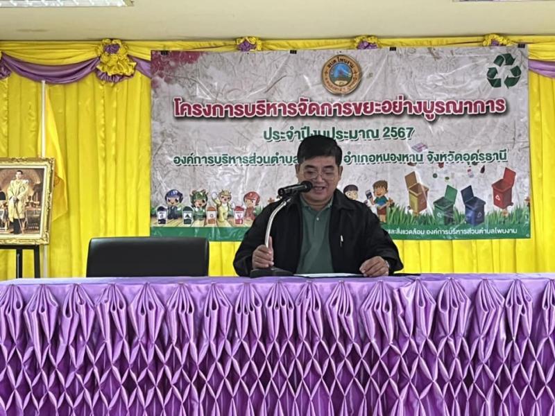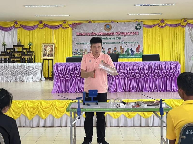 รายละเอียด : วันพุธ ที่ 11 กันยายน 2567 นายสุนันท์ บุญใบ นายกองค์การบริหารส่วนตำบลโพนงาม เป็นประธานในพิธีเปิดโครงการ "การบริหารจัดการขยะอย่างบูรณาการ" ประจำปีงบประมาณ 2567 ณ ห้องประชุมองค์การบริหารส่วนตำบลโพนงาม โดยมี นายยืนยง มะยุโรวาท ปลัดองค์การบริหารส่วนตำบลโพนงาม กล่าวรายงาน และได้รับเกียรติจาก นางดวงใจ ประสาททอง ผอ.กองสาธารณสุขและสิ่งแวดล้อม เทศบาลเมืองหนองสำโรง เป็นวิทยากรบรรยายกิจกรรม โครงการในครั้งนี้ จัดขึ้นเพื่อให้ความรู้การคัดแยกประเภทขยะมูลฝอย เพื่อลดปริมาณขยะในชุมชน และสามารถสร้างผลิดภัณฑ์จากขยะ เพิ่มมูลค่าผลิตภัณฑ์ เกิดกลุ่มอาชีพสร้างรายได้ในชุมชนต่อไป โดยมีกลุ่มเป้าหมาย คือ ผู้นำชุมชน ประชาชน ตัวแทนหมู่บ้านจากหมู่บ้านนำร่อง ที่มีกิจกรรมธนาคารขยะ จำนวน 50 คน
