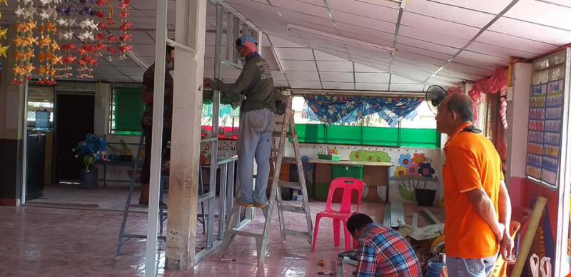 กองช่างซ่อมแซมไฟฟ้าส่องสว่างภายในชุมชนตำบลโพนงาม และลงพื้นที่ควบคุมงานปรับปรุงศูนย์พัฒนาเด็กเล็กโคกทุ่งยั้ง (13 ภาพ)