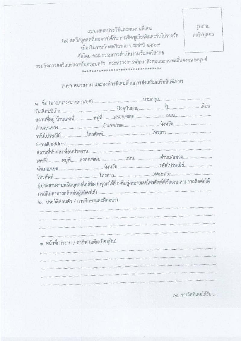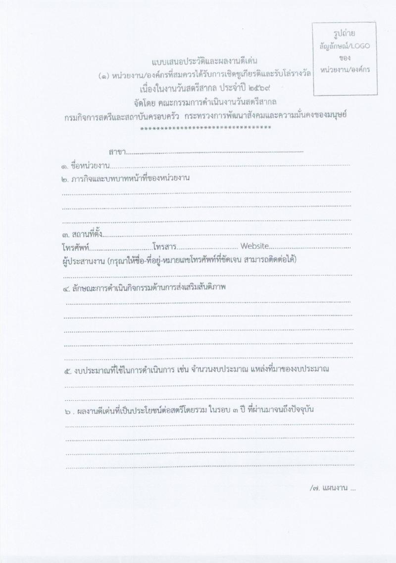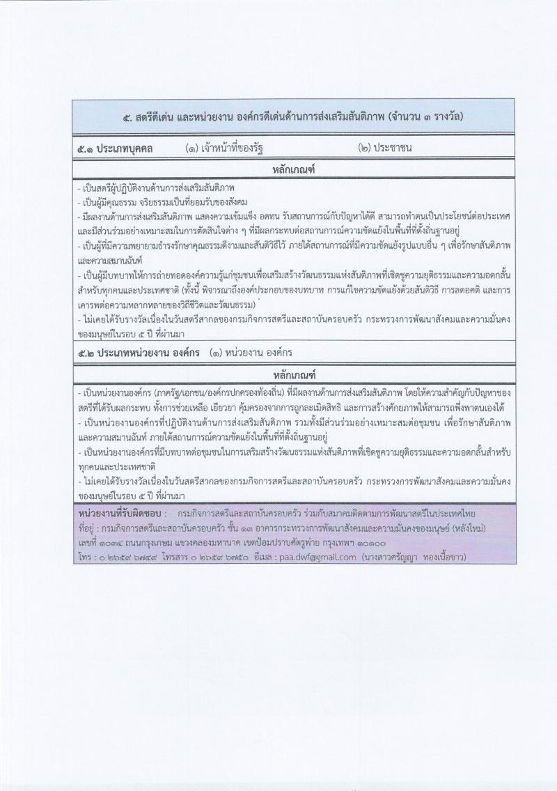 ประชาสัมพันธ์เสนอชื่อสตรีดีเด่นและหน่วยงาน องค์กรดีเด่นด้านการส่งเสริมสันติภาพ เนื่องในวันสตรีสากล ประจำปี 2568