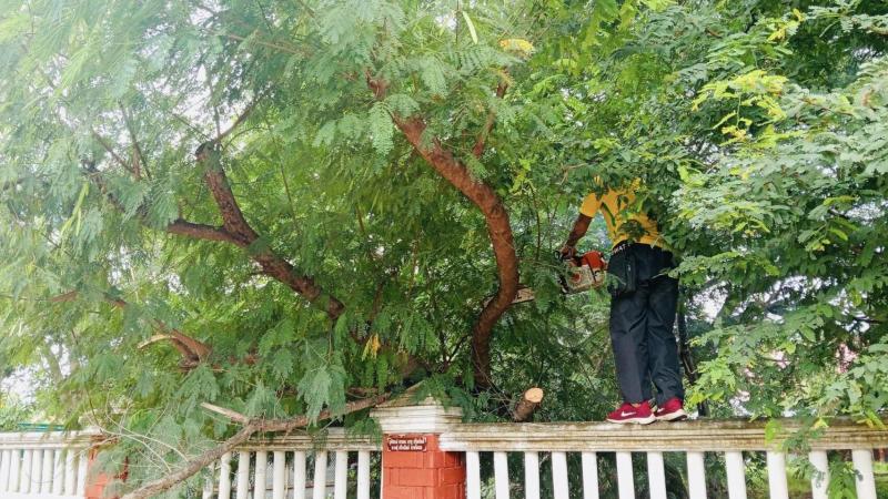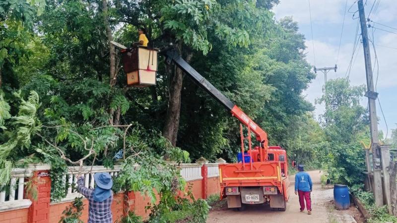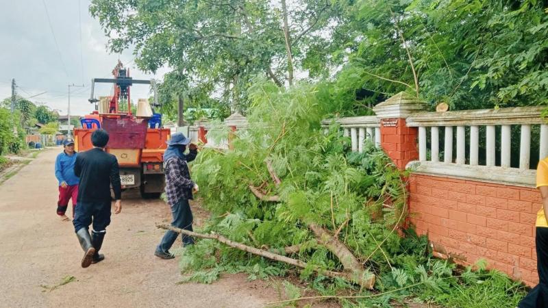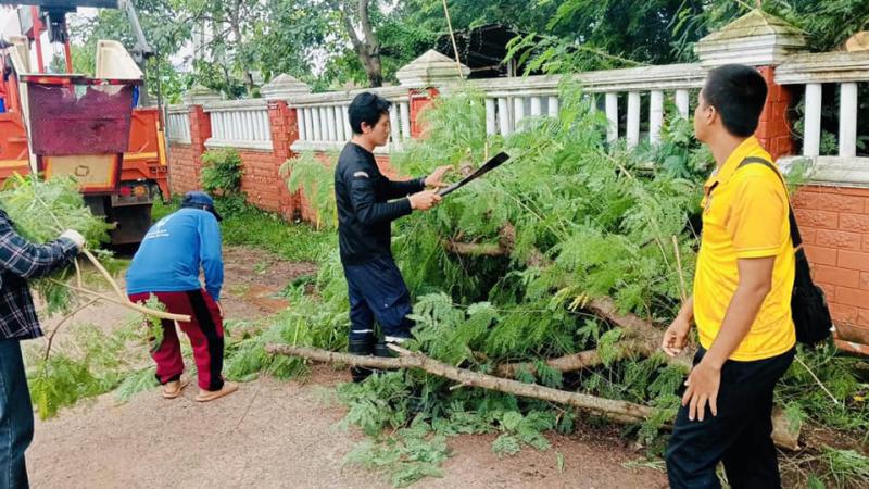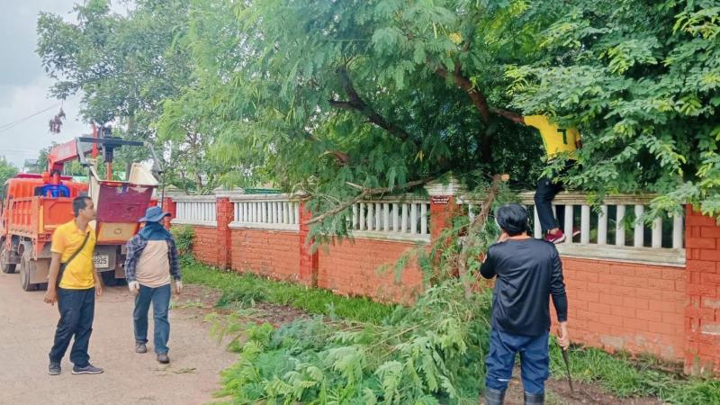 งานป้องกันและบรรเทาสาธารณภัย และกองช่าง ตัดกิ่งไม้ ข้างวัดศรีทรงธรรม บ้านหนองดินจี่ หมู่ 12