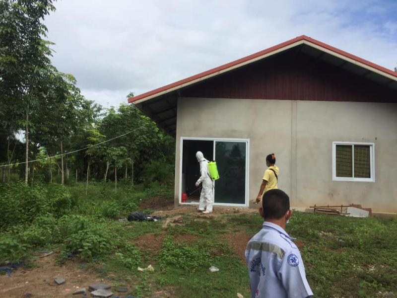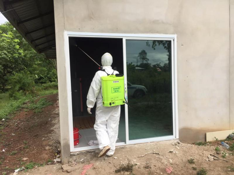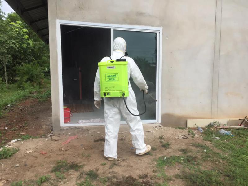 ทีมกู้ชีพ กองสาธารณสุขและสิ่งแวดล้อมออกพ่นยาบ้านผู้ป่วยโควิด บ้านโคกสว่างนาดี ม.13