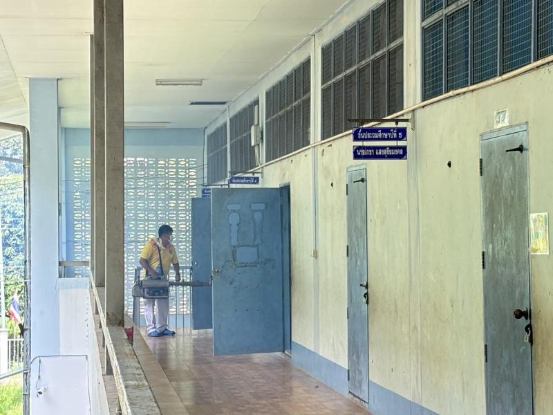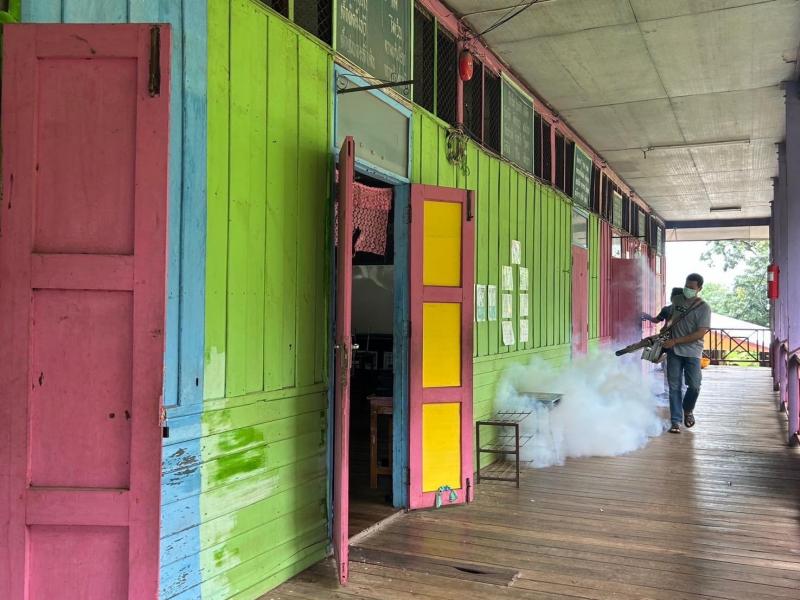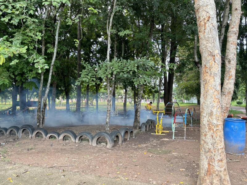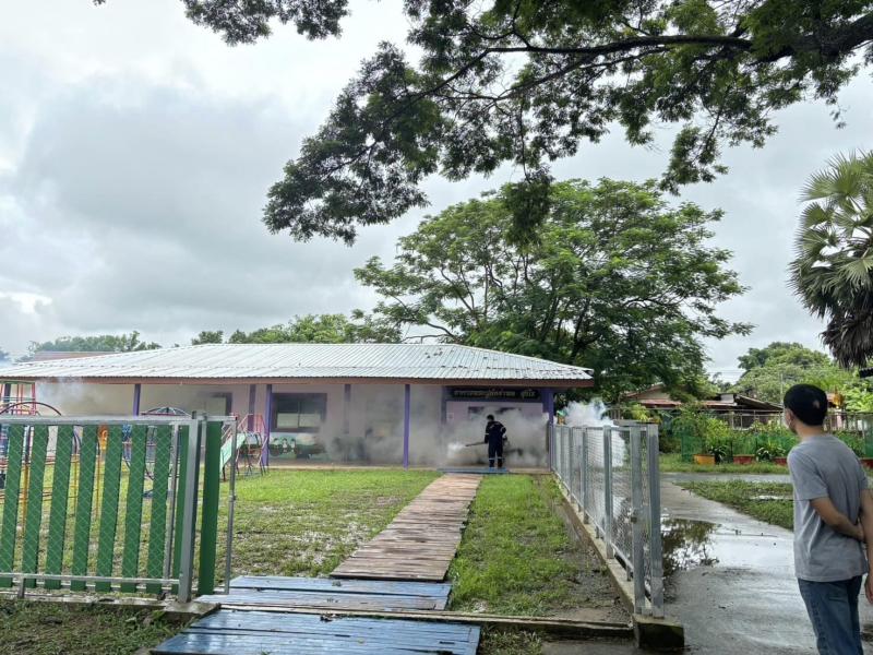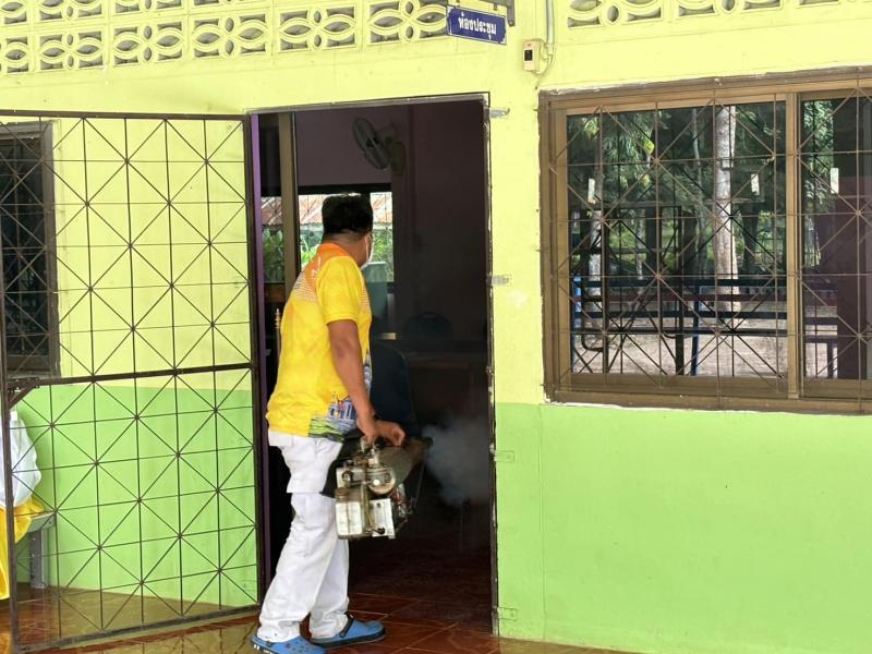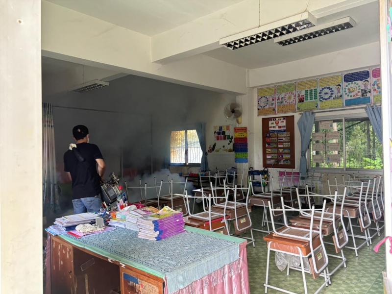 ออกพ่นหมอกควันเพื่อป้องกันการระบาดของโรคไข้เลือดออก ณ โรงเรียนในเขตพื้นที่องค์การบริหารส่วนตําบลโพนงาม