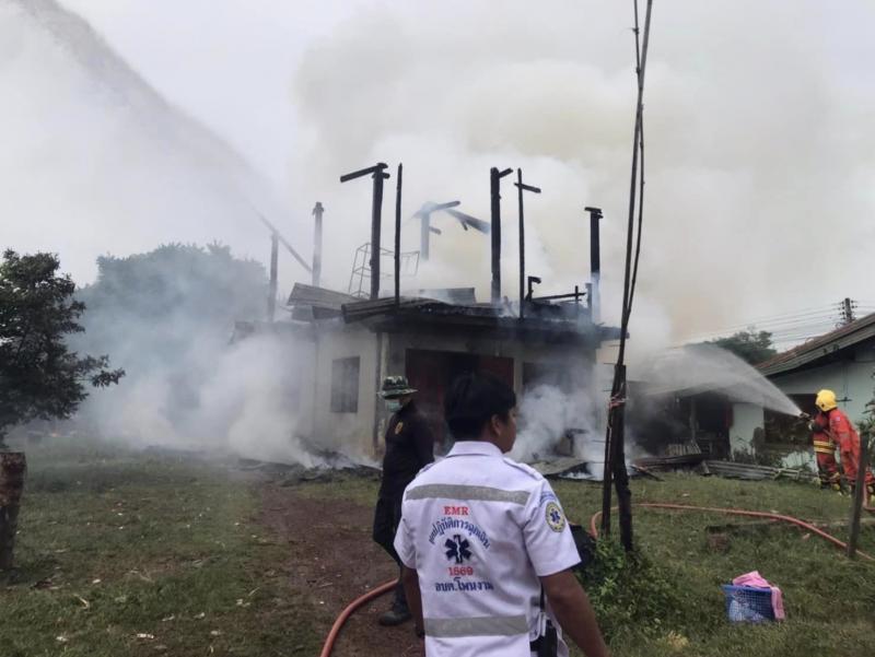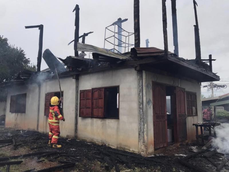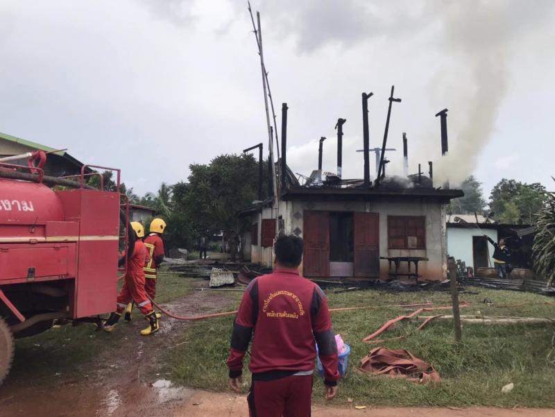 งานป้องกันและบรรเทาสาธารณภัย ระงับเหตุเพลิงไหม้บ้านเรือนประชาชน บ้านนางิ้ว ม.11 จำนวน 1 หลัง