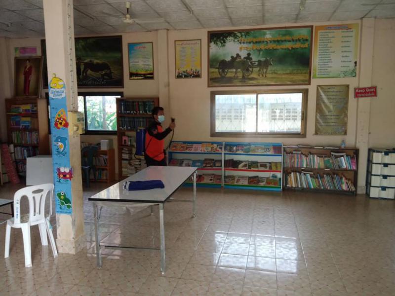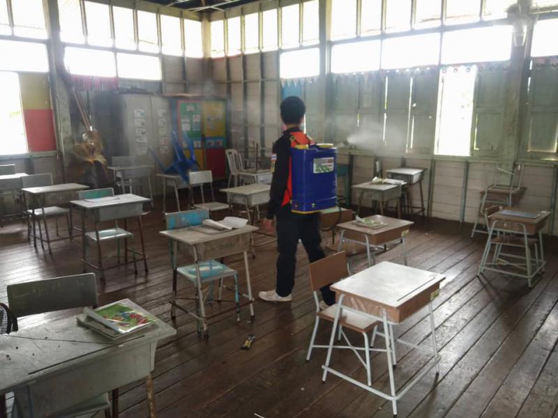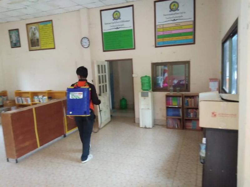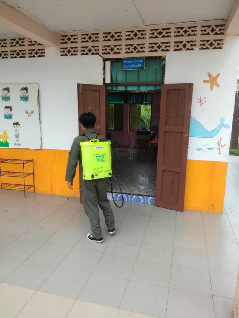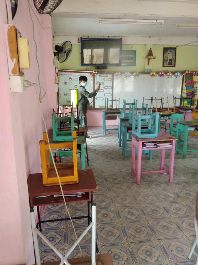 กองสาธารณสุขและสิ่งแวดล้อม ออกดำเนินการพ่นยาฆ่าเชื้อโรงเรียนบ้านโคกทุ่งยั้ง ตำบลโพนงาม