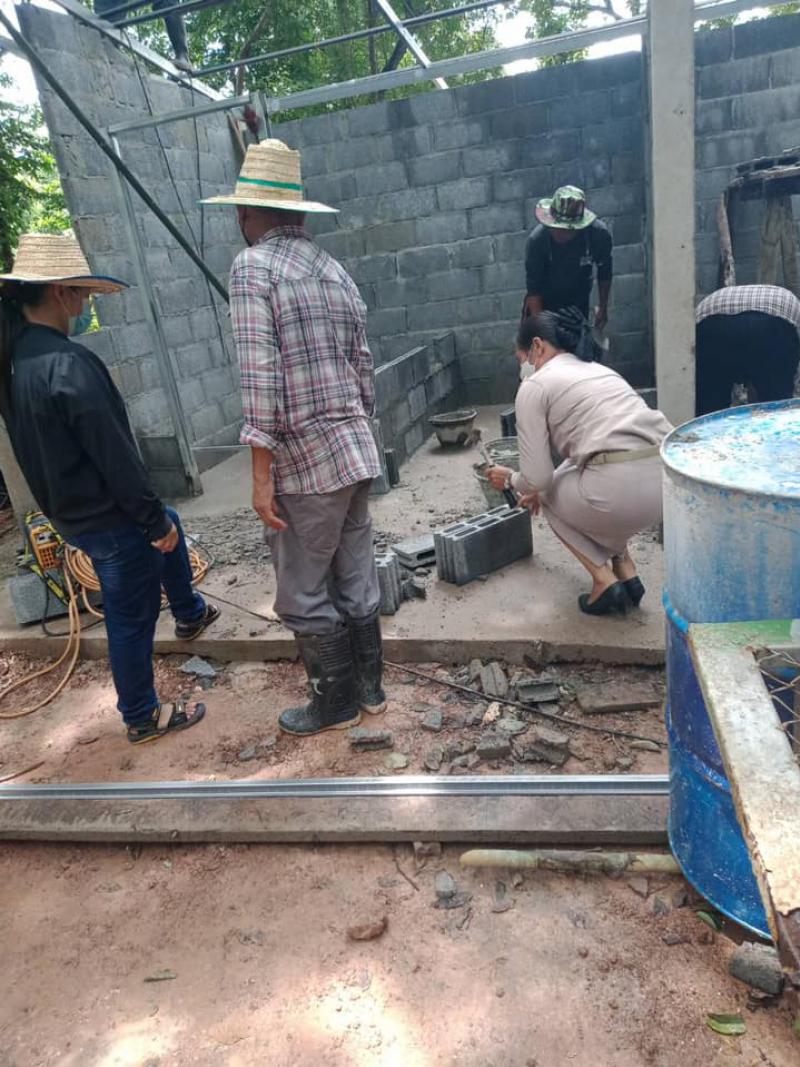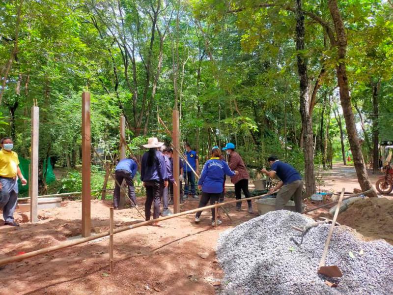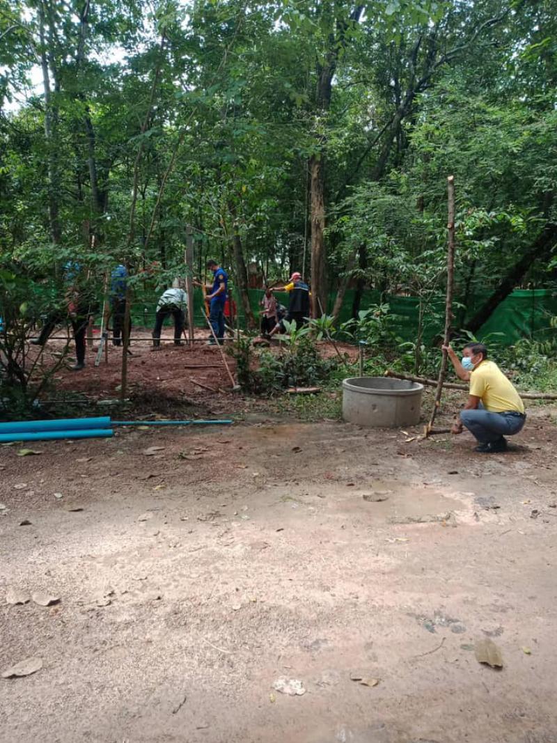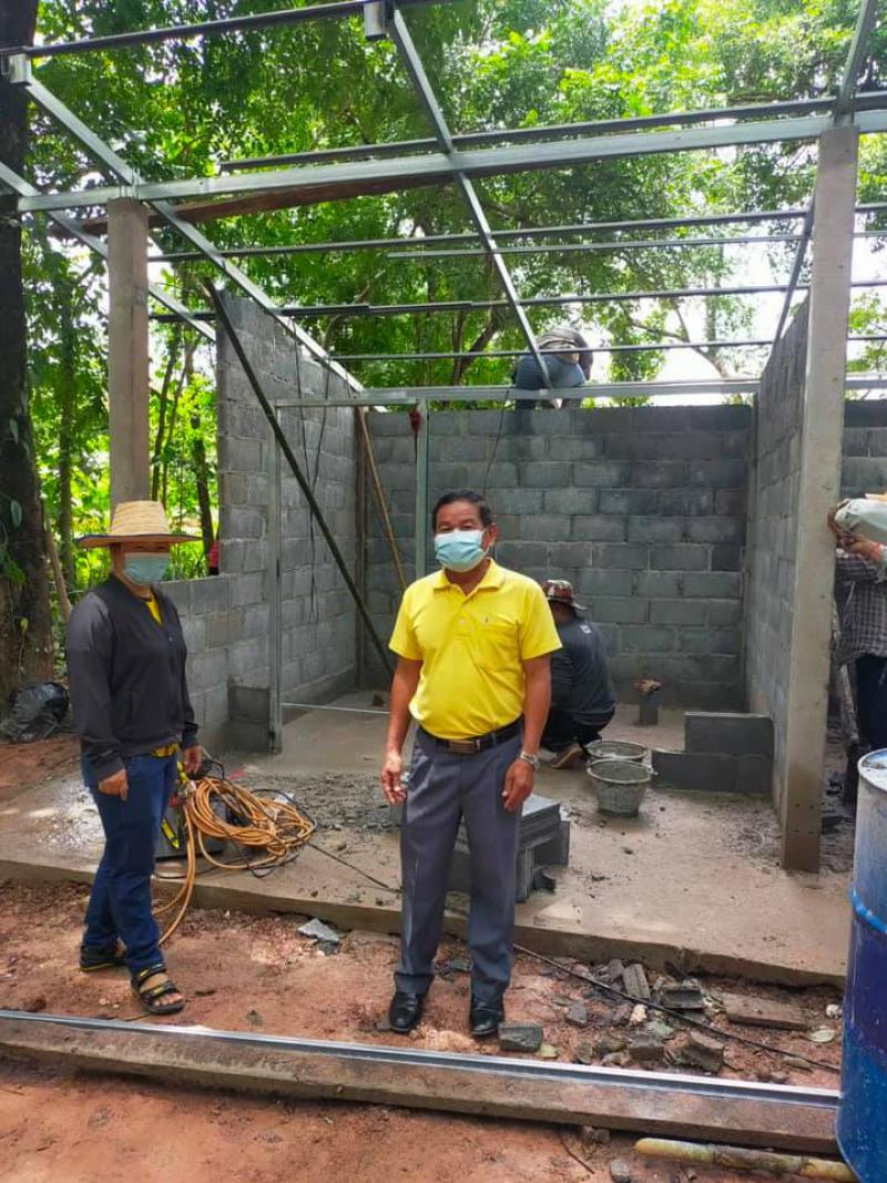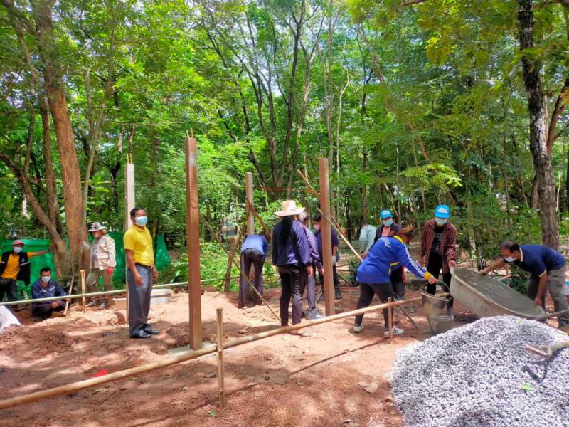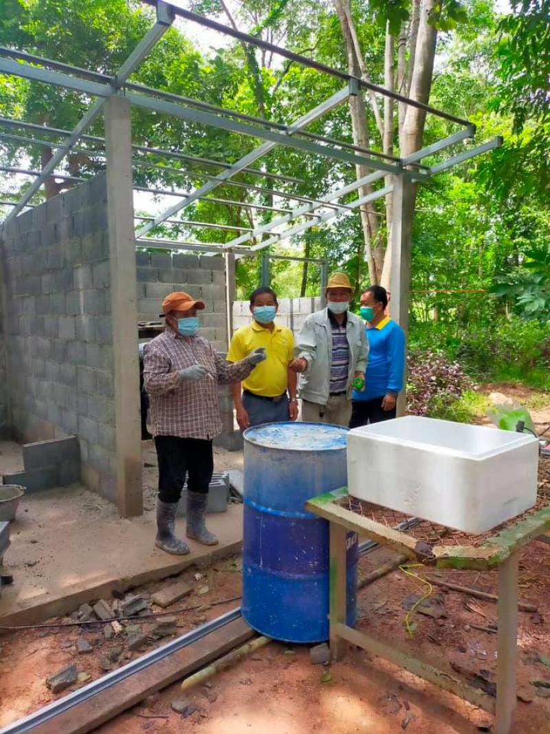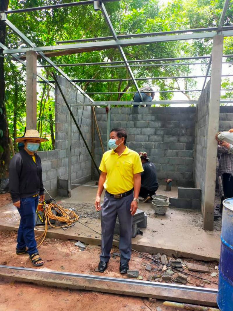 ลงพื้นที่ดูการก่อสร้างห้องน้ำสถานที่กักตัวผู้ที่มาจากพื้นที่เสี่ยงตำบลโพนงาม แห่งที่ 1 ณ วัดป่าไม้น้อย
