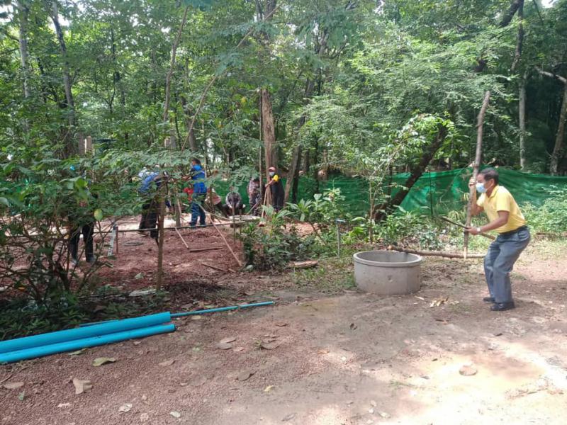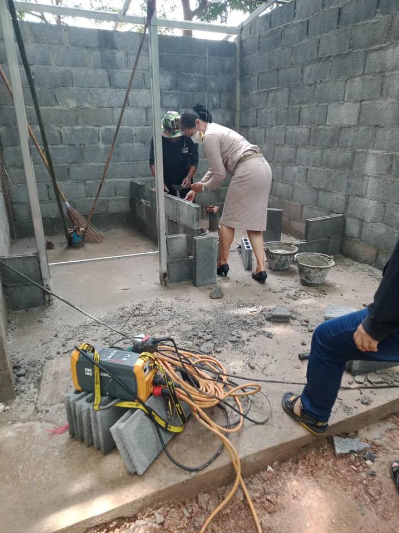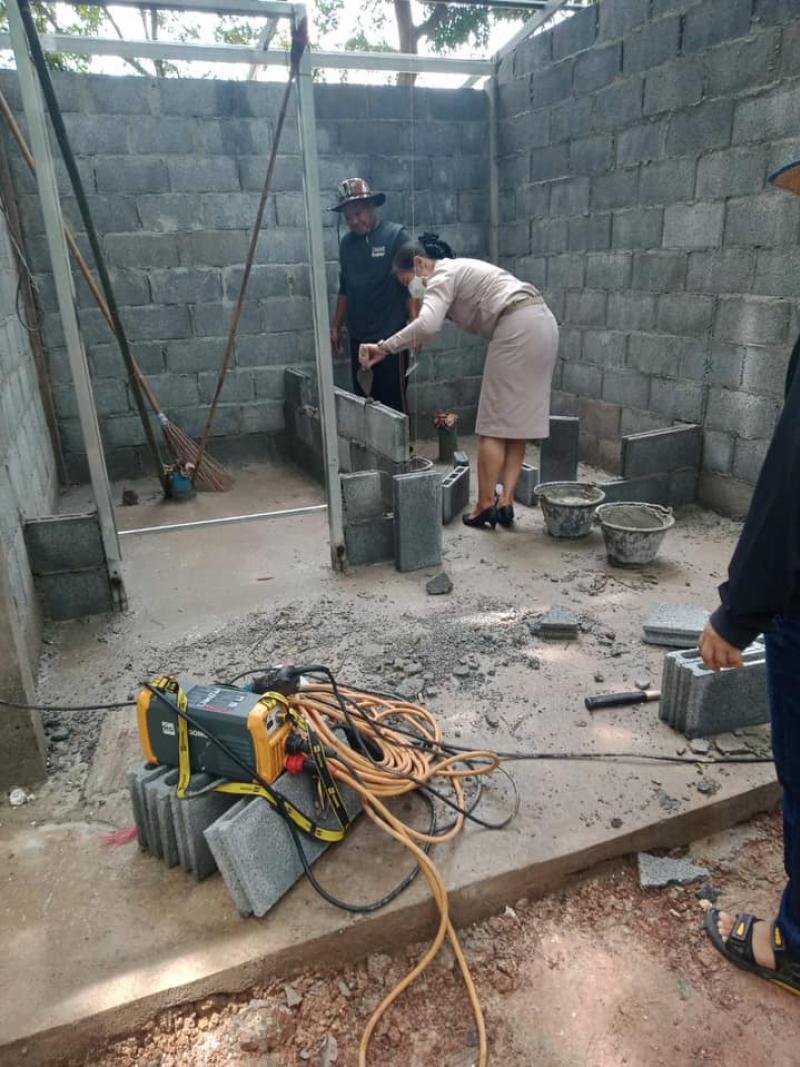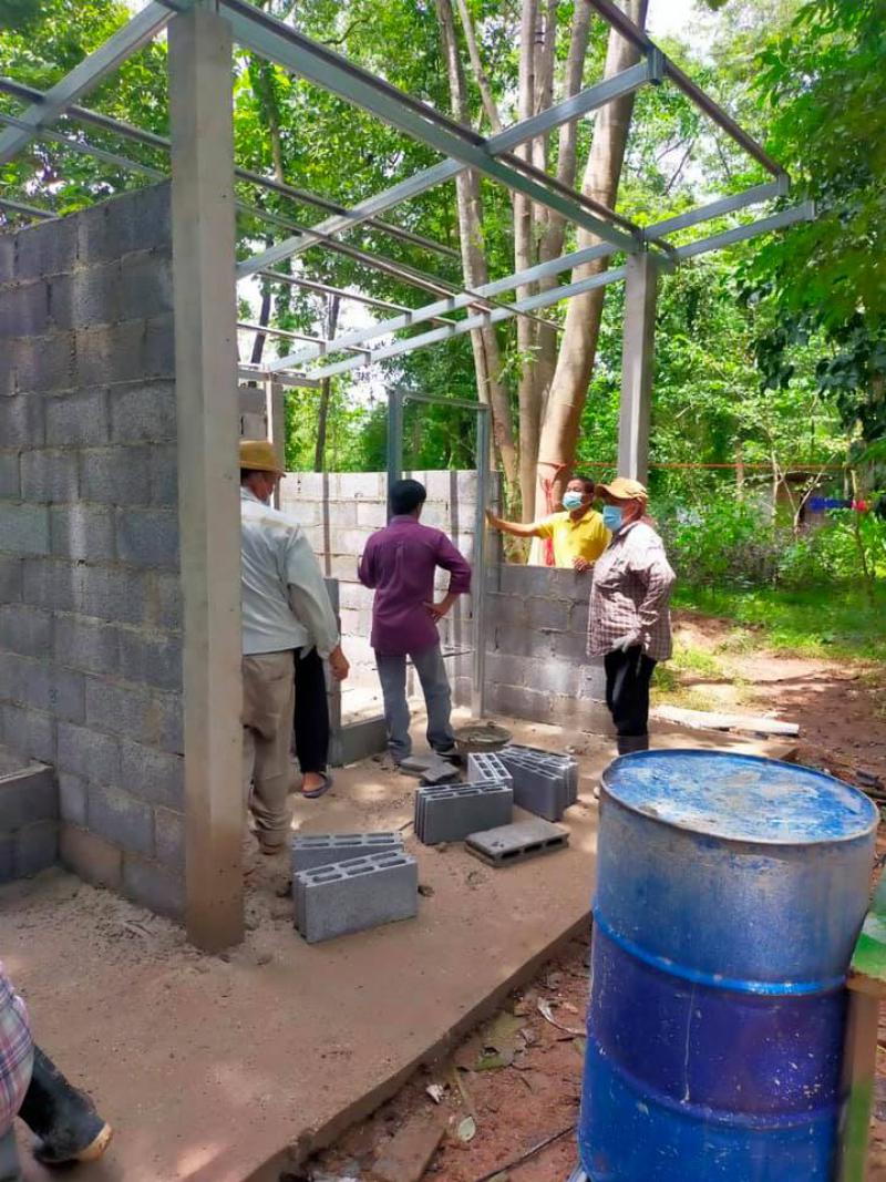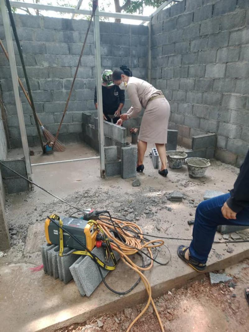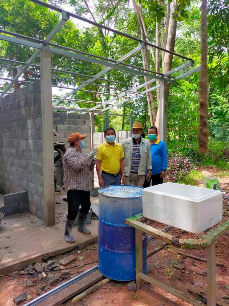 ลงพื้นที่ดูการก่อสร้างห้องน้ำสถานที่กักตัวผู้ที่มาจากพื้นที่เสี่ยงตำบลโพนงาม แห่งที่ 1 ณ วัดป่าไม้น้อย