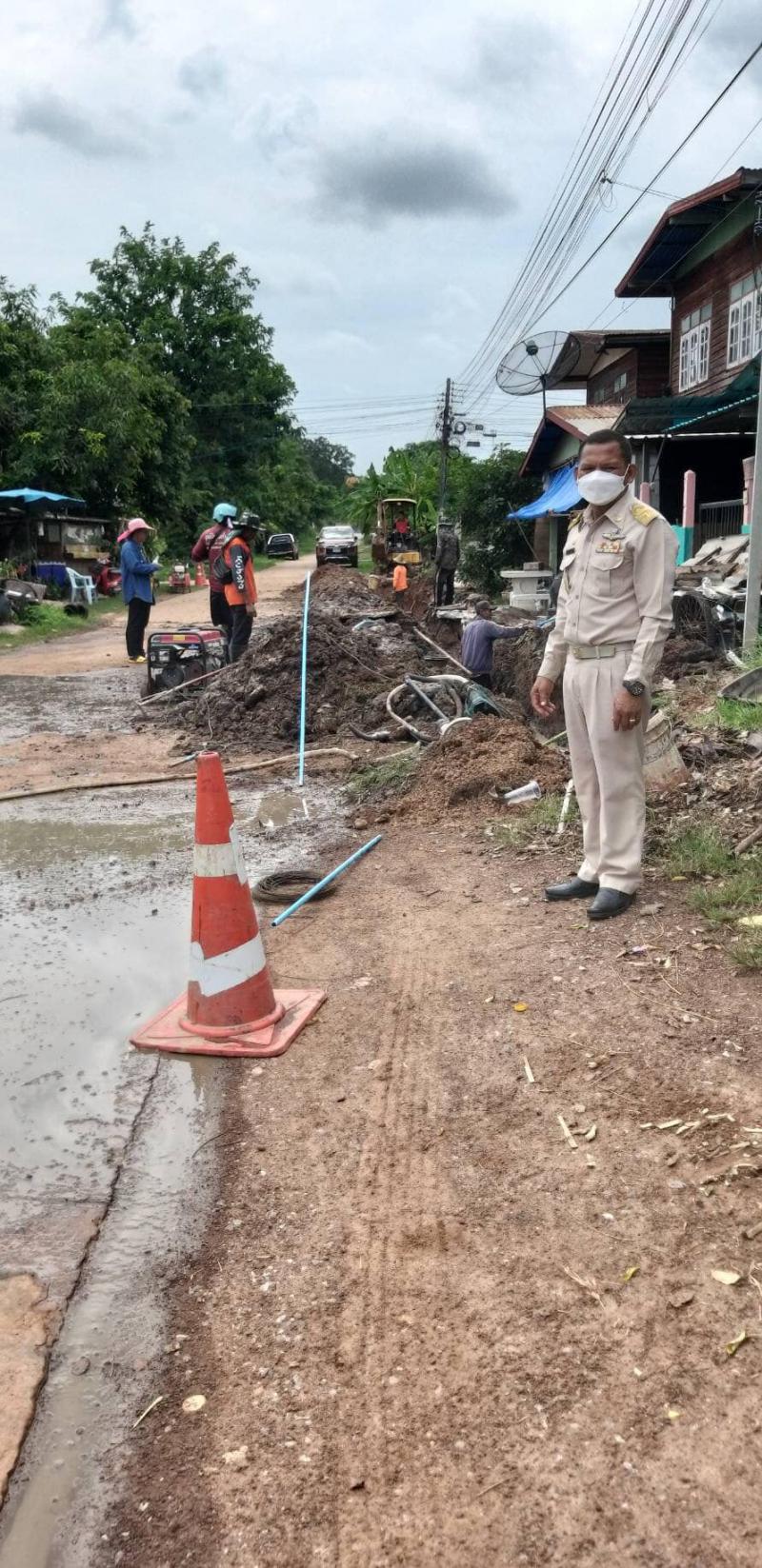 นายก อบต.โพนงาม ลงพื้นที่ตรวจเยี่ยมโครงการวางท่อระบายน้ำในชุมชน บ้านโพนงาม หมู่15 (4 ภาพ)
