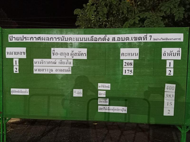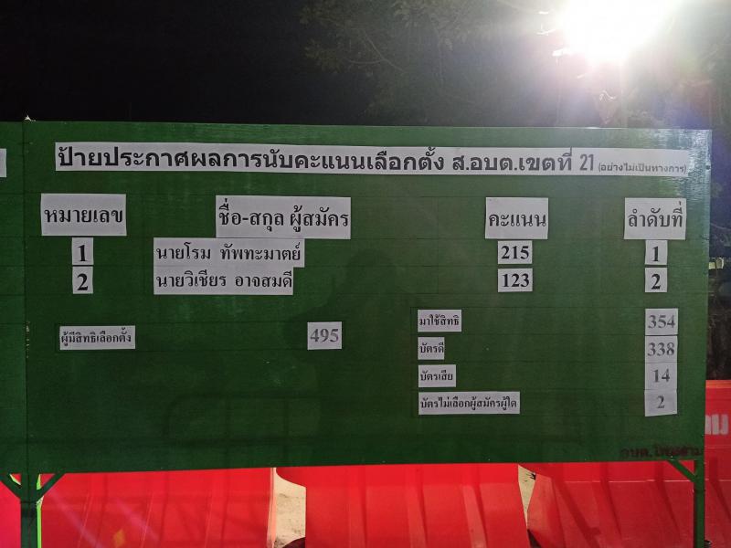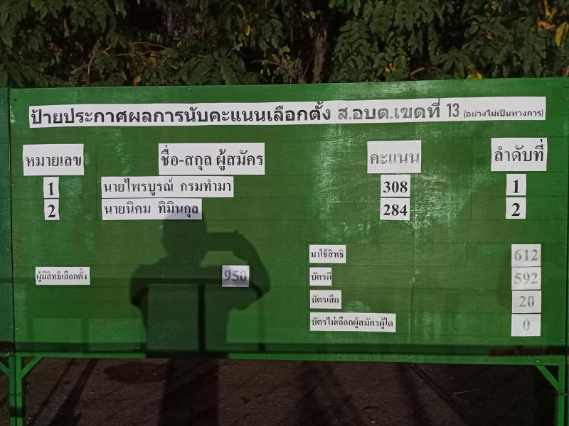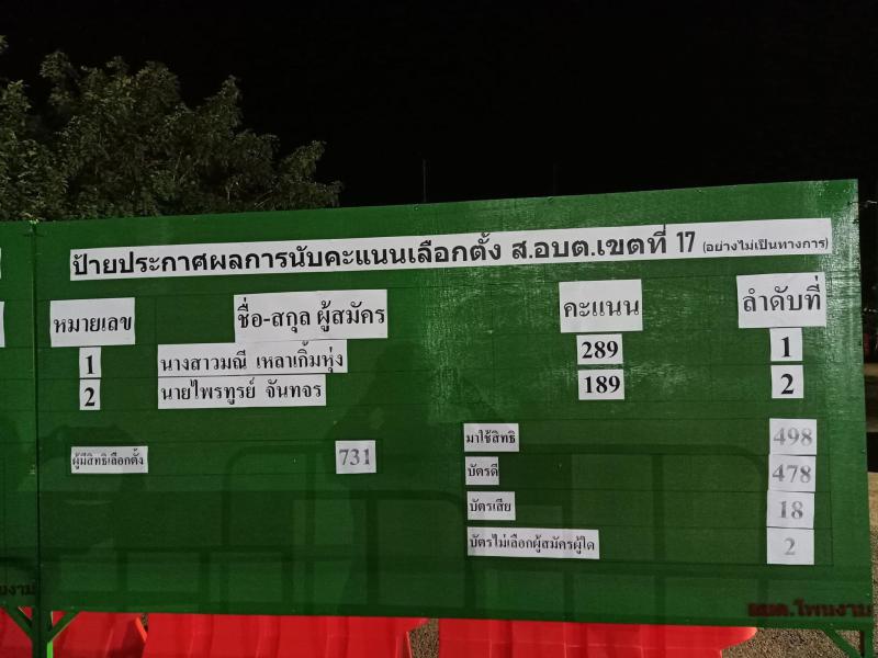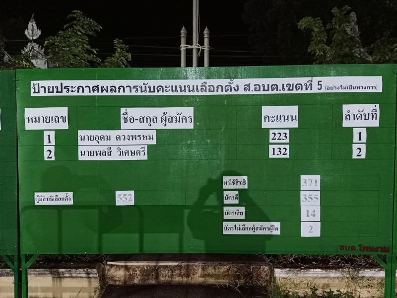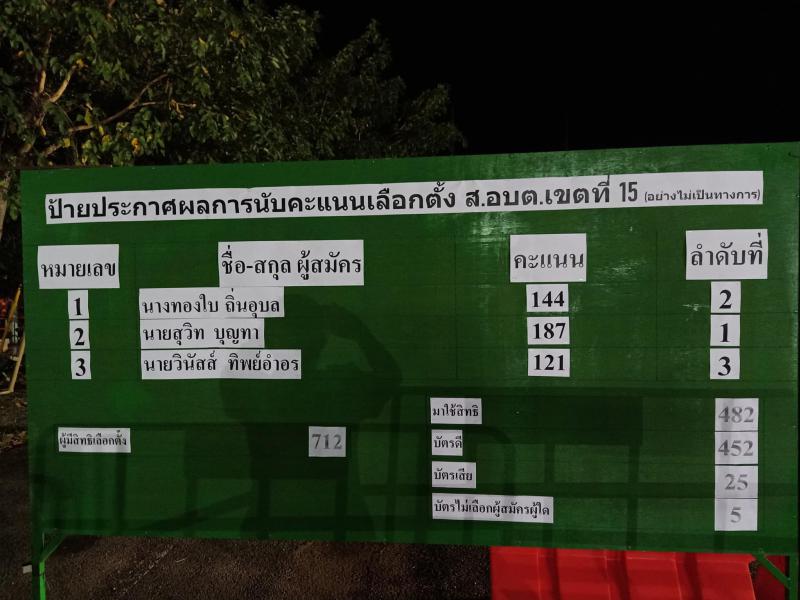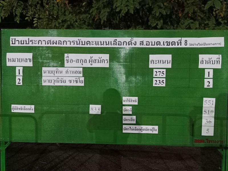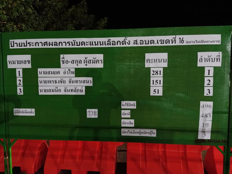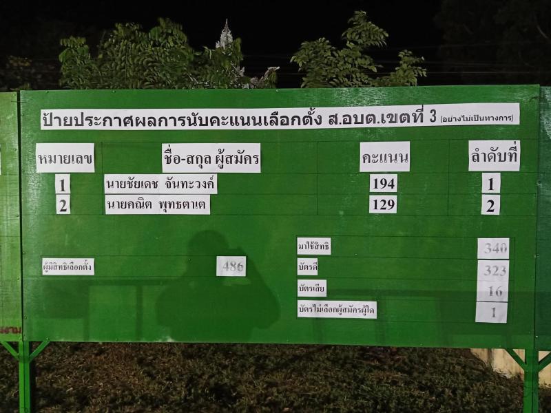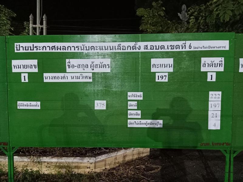 ประกาศผลการนับคะแนนเลือกตั้งสมาชิกสภาองค์การบริหารส่วนตำบลโพนงามและนายกองค์การบริหารส่วนตำบลโพนงาม วัน อาทิตย์ ที่ 28 พฤศจิกายน 2564 (อย่างไม่เป็นทางการ) (22 ภาพ)