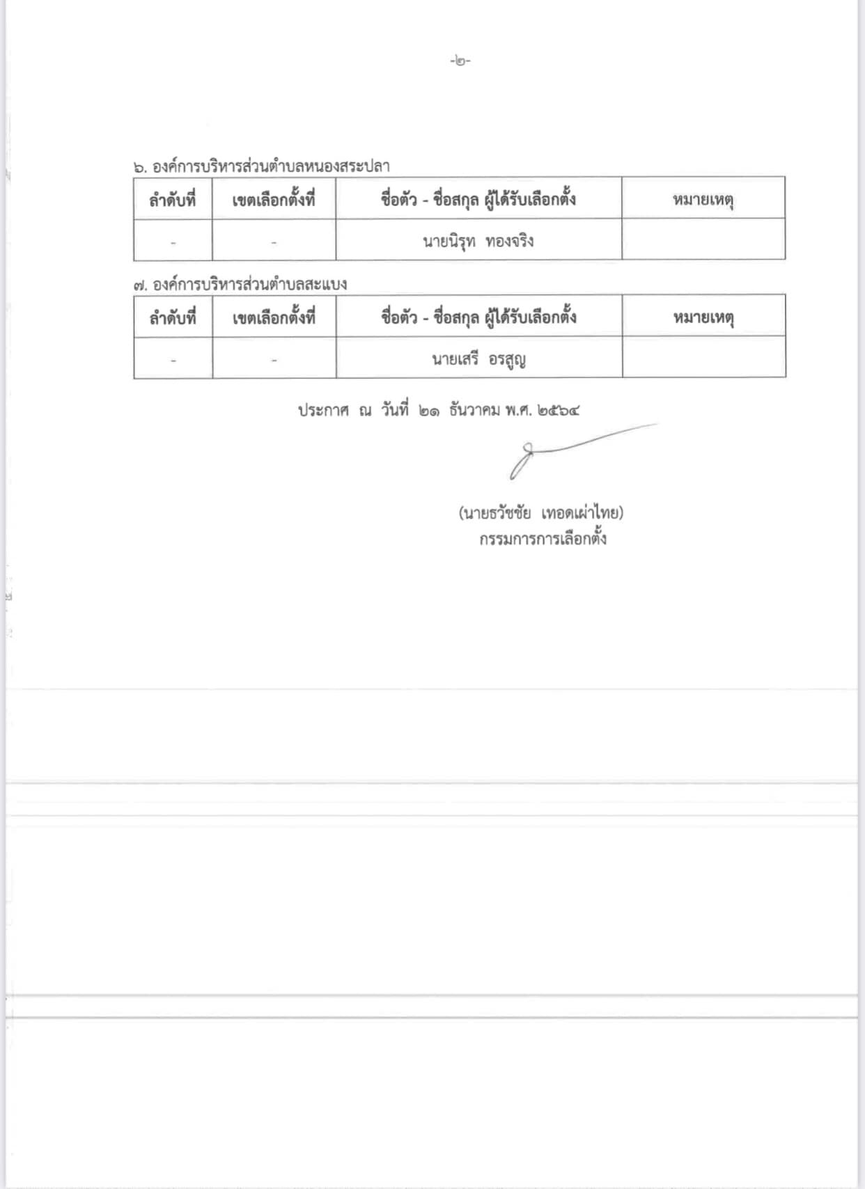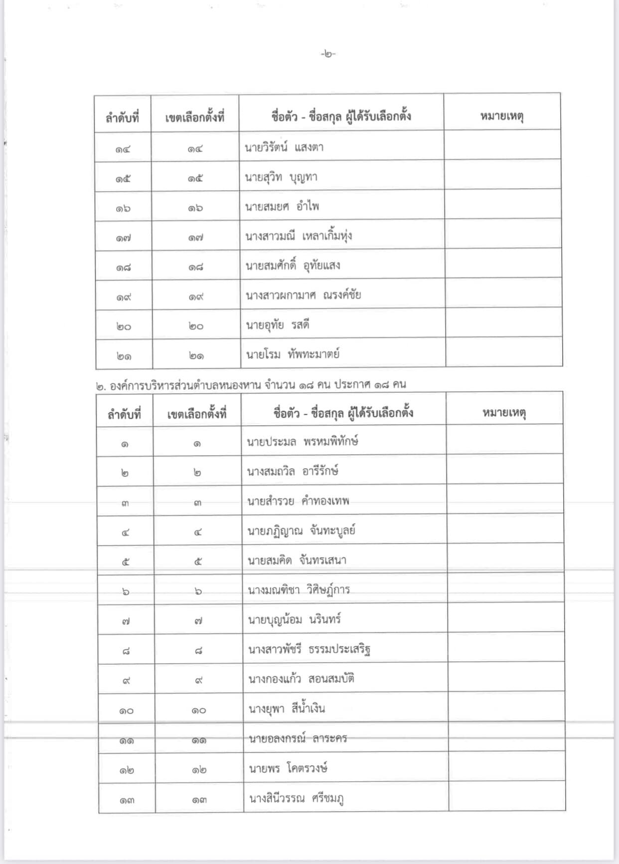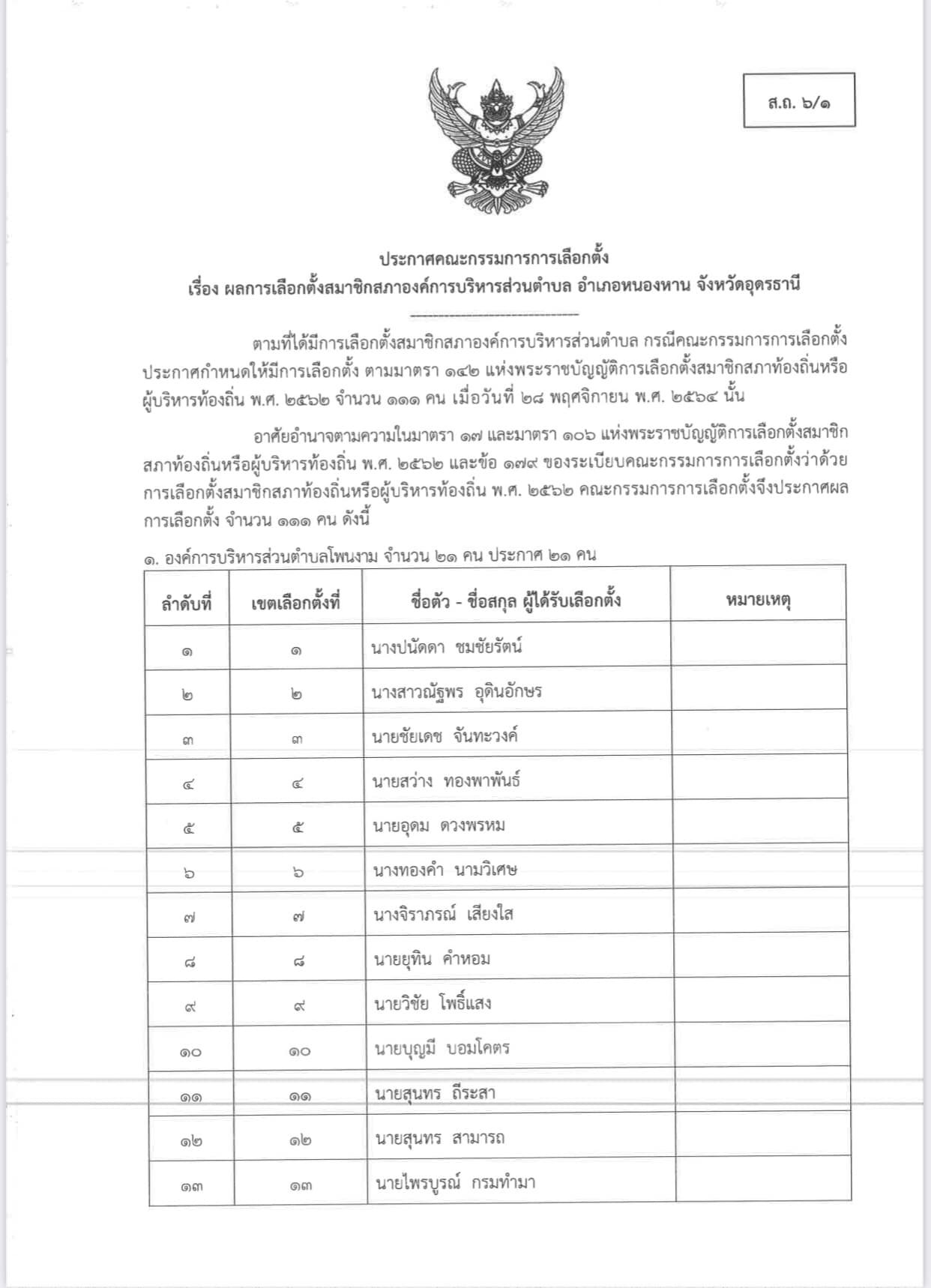 ประกาศคณะกรรมการการเลือกตั้ง เรื่อง ผลการเลือกตั้งนายกองค์การบริหารส่วนตำบลโพนงามและสมาชิกสภาองค์การบริหารส่งนตำบลโพนงาม