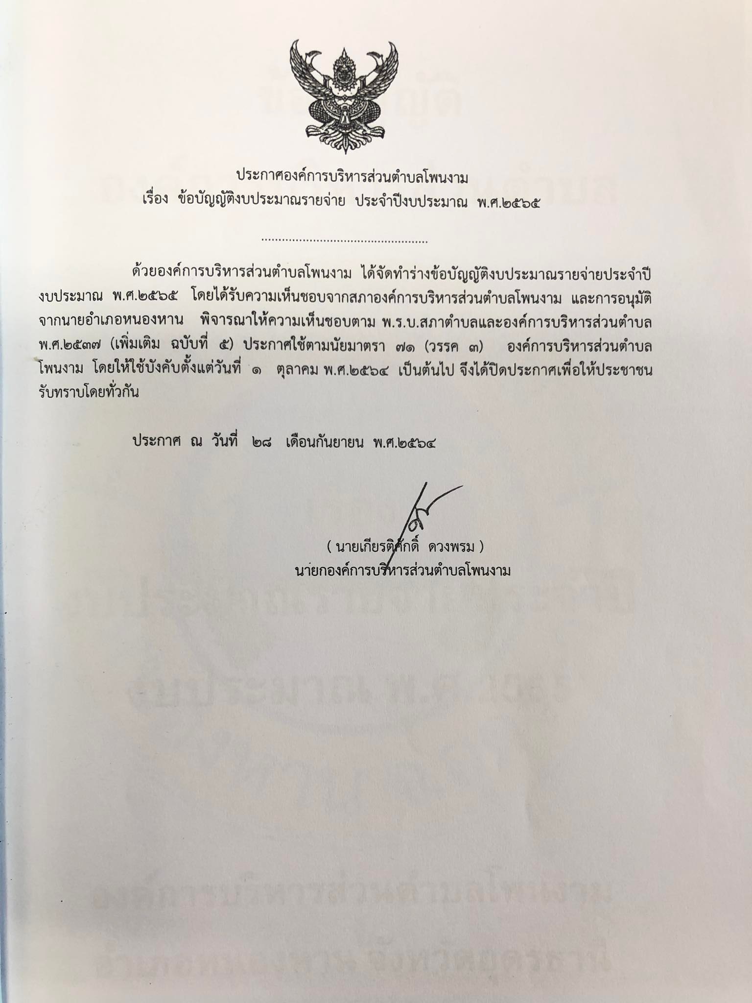 ข้อบัญญัติงบประมาณรายจ่าย ประจำปีงบประมาณ พ.ศ.2565