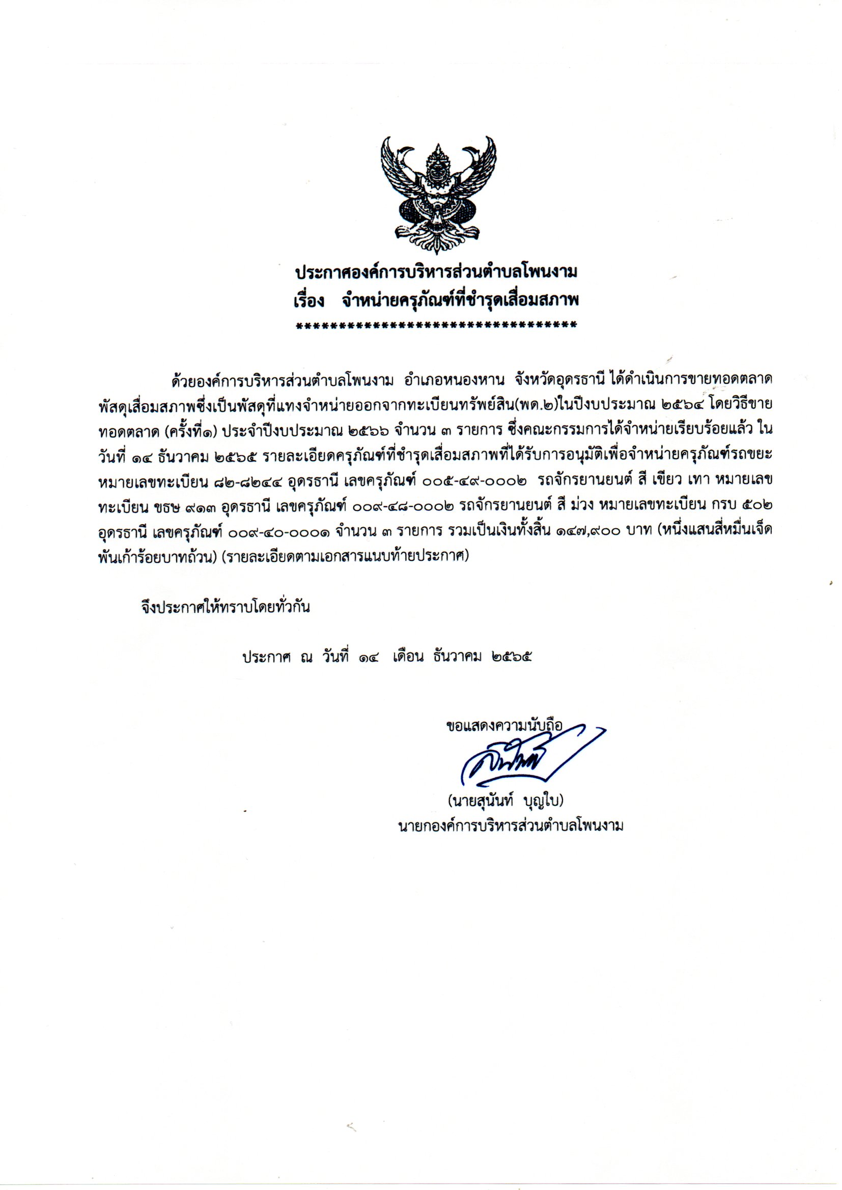 จำหน่ายครุภัณฑ์ที่ชำรุดเสื่อมสภาพ