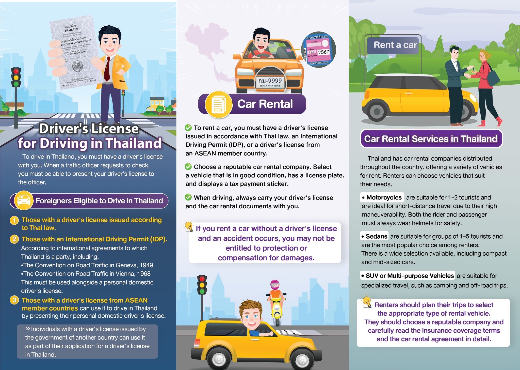 ประชาสัมพันธ์ข้อมูลเกี่ยวกับใบอนุญาตขับขี่รถในประเทศไทย การเช่ารถในประเทศไทย และการขับขี่รถในประเทศไทย สำหรับนักท่องเที่ยว