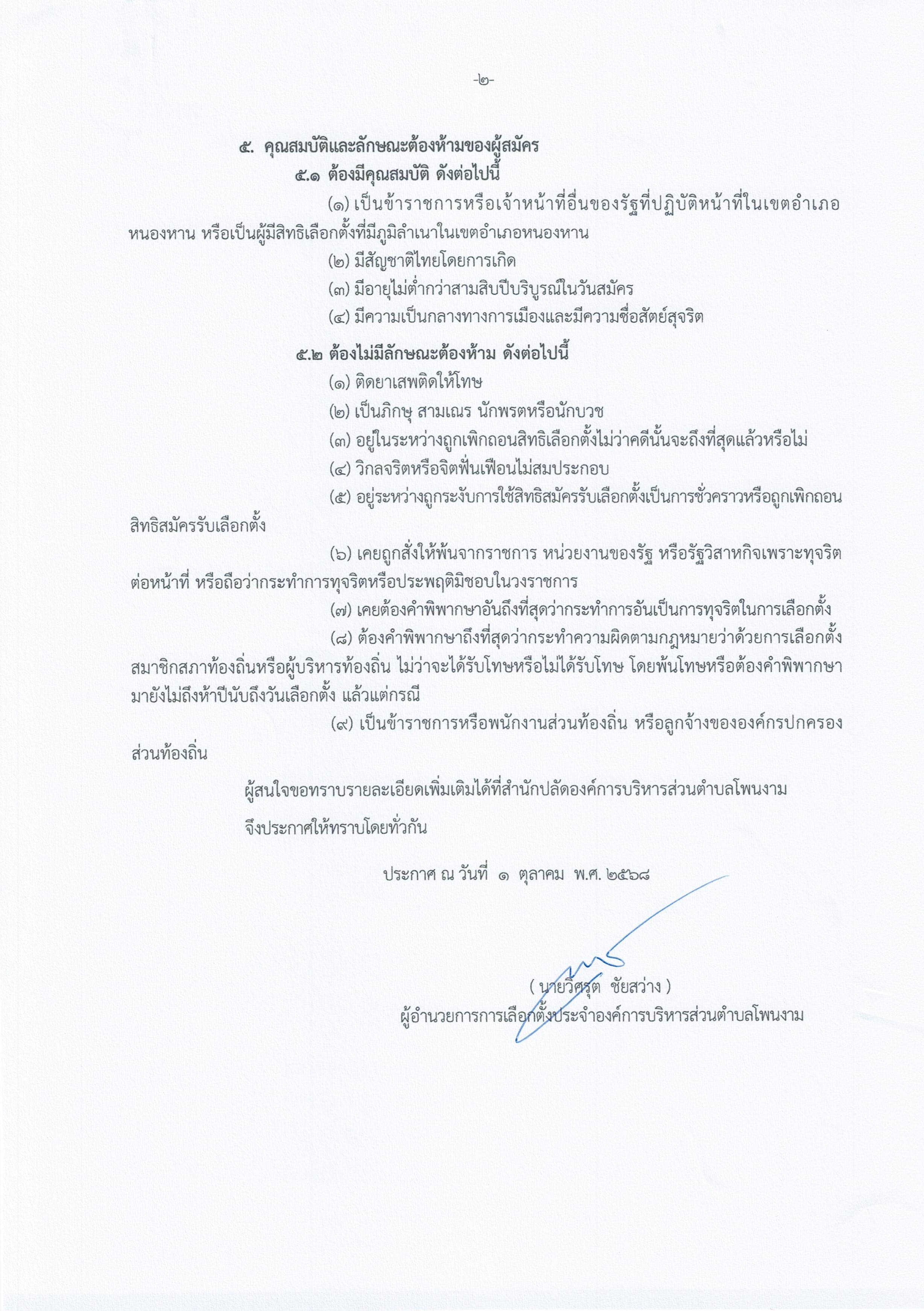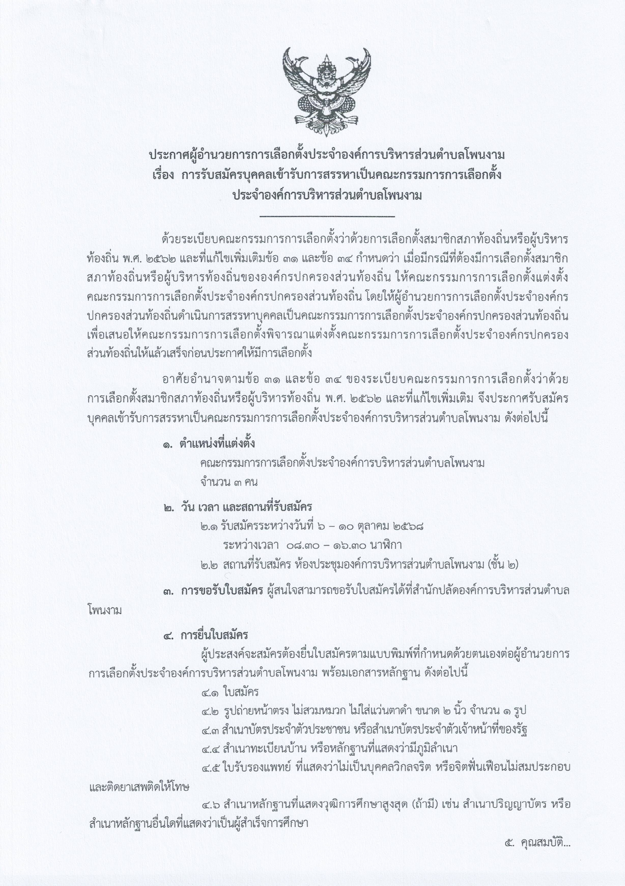 ประกาศผู้อำนวยการการเลือกตั้งประจำองค์การบริหารส่วนตำบลโพนงาม เรื่อง การรับสมัครบุคคลเข้ารับการสรรหาเป็นคณะกรรมการการเลือกตั้งประจำองค์การบริหารส่วนตำบลโพนงาม